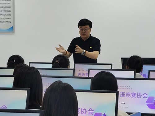 随后宫巨研主任对“词达人”省赛的流程作了详尽的介绍。首先,他告诉参赛的学生要特别留意比赛安排与比赛形式;其次,要了解比赛所使用的词汇范围,以便能够针对性地进行学习和复习;最后,要通读比赛须知及奖项设置。同时,宫主任还与学生互动交流,分享了丰富的备赛经验以及自己的参赛经历,激励了参赛学生的热情,使学生们倍受鼓舞,会议氛围轻松。
