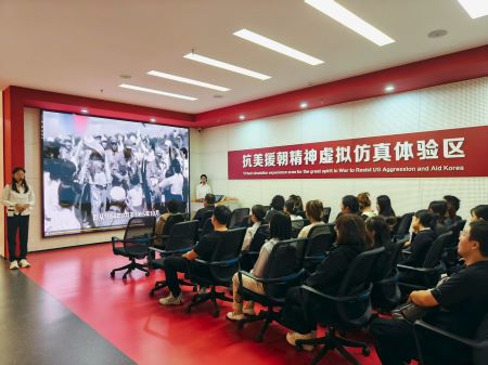 一进展馆,仿佛穿越时空,回到了70多年前那个炮火连天的朝鲜战场,感受着那段气壮山河的英雄史诗。教师们跟随讲解员,依次参观了七大展区——“序厅”、“为了和平 勇于迎战”、“边打边谈 胜利凯旋”、“立国之战 正义之战”、“伟大精神 思想内涵”、“跨越时空 传承发扬”、“忠魂不泯 浩气长存”及尾厅, 通过这些展览,教师们了解了抗美援朝战争的历史背景、艰苦过程以及重大历史意义,感受到了志愿军将士为祖国而战、为和平而战的坚定信念。在抗美援朝精神虚拟仿真体验区和“艰难行军 支援前线”光影互动区,提供了沉浸式体验,让教师们更加直观地了解抗美援朝战争的艰辛历程和伟大胜利。